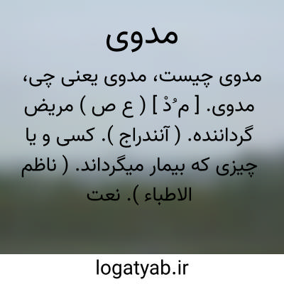 مدوی. [ م ُدْ ] ( ع ص ) مریض گرداننده. ( آنندراج ). کسی و یا چیزی که بیمار میگرداند. ( ناظم الاطباء ). نعت فاعلی است از ادواء. رجوع به ادواء شود. || طعام مُدْو؛ طعام بسیار. ( منتهی الارب ) ( ناظم الاطباء ). رجوع به مُدْو شود.