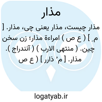 مذار. [ م ِ ] ( ع ص ) امراءة مذار؛ زن سخن چین. ( منتهی الارب ) ( آنندراج ).