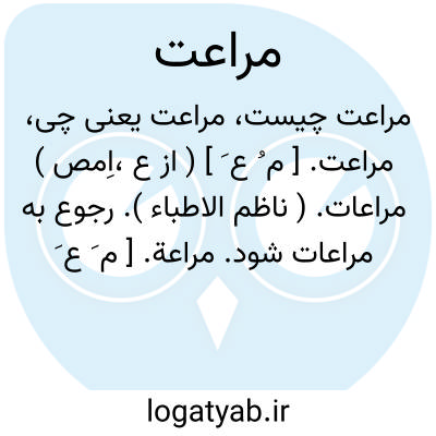 مراعت. [ م ُ ع َ ] ( از ع،اِمص ) مراعات. ( ناظم الاطباء ). رجوع به مراعات شود.