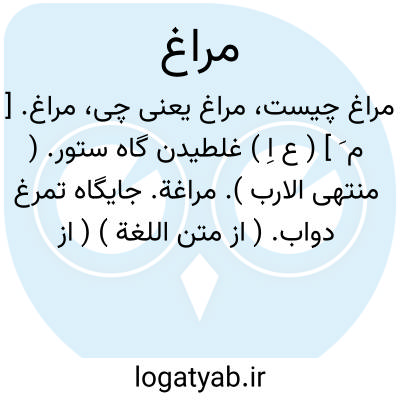 مراغ. [ م َ ] ( ع اِ ) غلطیدن گاه ستور. ( منتهی الارب ). مراغة. جایگاه تمرغ دواب. ( از متن اللغة ) ( از اقرب الموارد ). جای غلط زدن چارپایان. جای خرغلط زدن.