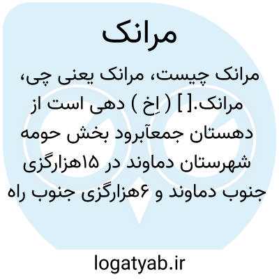 مرانک.[ ] ( اِخ ) دهی است از دهستان جمعآبرود بخش حومه شهرستان دماوند در 15هزارگزی جنوب دماوند و 6هزارگزی جنوب راه تهران به دماوند، در جلگه سردسیری واقع و دارای 560 تن سکنه است. آبش از قنات و محصول عمده اش غلات، لوبیا، سیب زمینی، مختصر میوه جات سردسیری و شغل مردمش زراعت است. ( از فرهنگ جغرافیایی ایران ج 1 ).