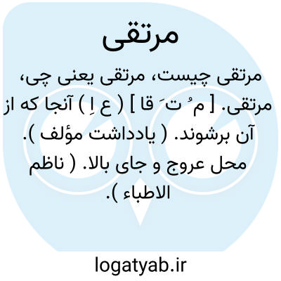 مرتقی. [ م ُ ت َ ] ( ع ص ) برآینده بر نردبان. ( آنندراج ). بالارونده. ( غیاث اللغات ). صعودکننده. نعت فاعلی است از ارتقاء به معنی صعود و بالا رفتن. رجوع به ارتقاء شود. || بلندکننده. ( غیاث اللغات ).رجوع به معنی قبلی شود. || بالا رفته و در بالا پیدا شده. ( ناظم الاطباء ). رجوع به معنی اول شود.