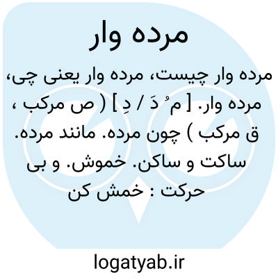 مرده وار. [ م ُ دَ / دِ ] ( ص مرکب، ق مرکب ) چون مرده. مانند مرده. ساکت و ساکن. خموش. و بی حرکت: