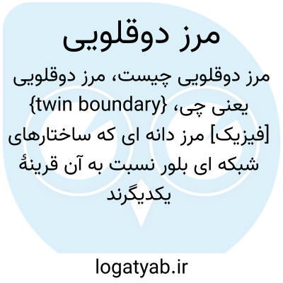 {twin boundary} [فیزیک] مرز دانه ای که ساختارهای شبکه ای بلور نسبت به آن قرینۀ یکدیگرند