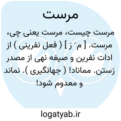 مرست. [ م َ رَ ] ( فعل نفرینی ) از ادات نفرین و صیغه نهی از مصدر رَستن. مماناد! ( جهانگیری ). نماند و معدوم شود! ( برهان ). کلمه نفرین یعنی مماناد و معدوم شواد! ( ناظم الاطباء ). رها مشواد! نجات نیاباد!: