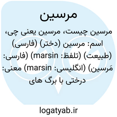 اسم: مرسین (دختر) (فارسی) (طبیعت) (تلفظ: marsin) (فارسی: مَرسين) (انگلیسی: marsin)