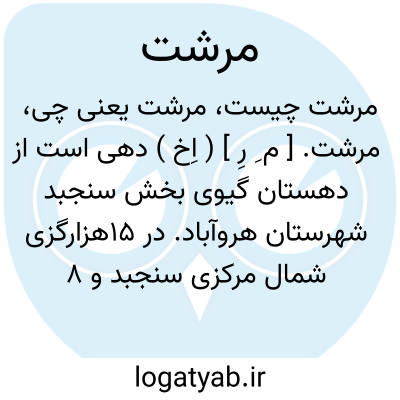 مرشت. [ م ِ رِ ] ( اِخ ) دهی است از دهستان گیوی بخش سنجبد شهرستان هروآباد. در 15هزارگزی شمال مرکزی سنجبد و 8 هزارگزی راه هروآباد به اردبیل و در منطقه کوهستانی سردسیر واقع و دارای 903 تن سکنه است.آبش از چشمه و محصولش غله، حبوبات و شغل مردمش زراعت و گله داری است. ( از فرهنگ جغرافیایی ایران ج 4 ).