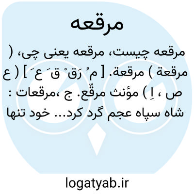 ( اسم ) یک مرقع جمع: مرقعات. توضیح خرق. صوفیان علامت اشتهار آن بخرقه این است که پاره های مختلف و گاهی رنگارنگ بهم آورده و از آنهاخرقه می ساخته اند و جامه ای سخت بتکلف بوده است و آنرا بدین مناسبت مرقعه نیز می گفته اند.