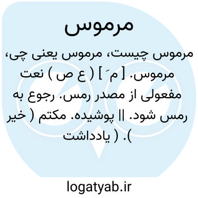 مرموس. [ م َ ] ( ع ص ) نعت مفعولی از مصدر رمس. رجوع به رمس شود. || پوشیده. مکتم ( خیر ). ( یادداشت مرحوم دهخدا ). || مطموث ( خاک ). ( یادداشت مرحوم دهخدا ).
