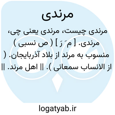 مرندی. [ م َ رَ ] ( ص نسبی ) منسوب به مرند از بلاد آذربایجان. ( از الانساب سمعانی ). || اهل مرند. || از مرند. ساخت مرند: