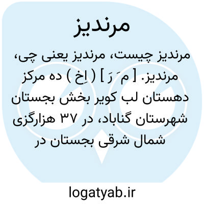 مرندیز. [ م َ رَ ] ( اِخ ) ده مرکز دهستان لب کویر بخش بجستان شهرستان گناباد، در 37 هزارگزی شمال شرقی بجستان در جلگه و گرمسیر. دارای 1000تن سکنه. آبش از قنات و محصولش غلات، زیره، ارزن، شغل مردمش زراعت ومال داری است. ( از فرهنگ جغرافیائی از ایران ج 9 ).