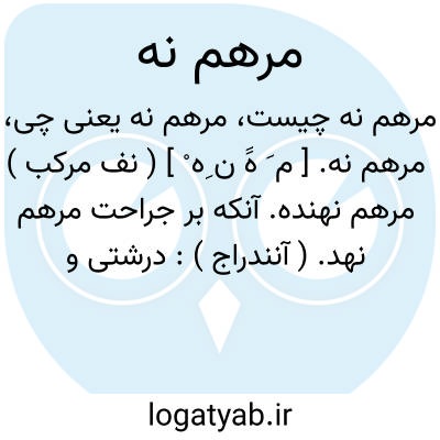 مرهم نه. [ م َ هََ ن ِه ْ ] ( نف مرکب ) مرهم نهنده. آنکه بر جراحت مرهم نهد. ( آنندراج ):