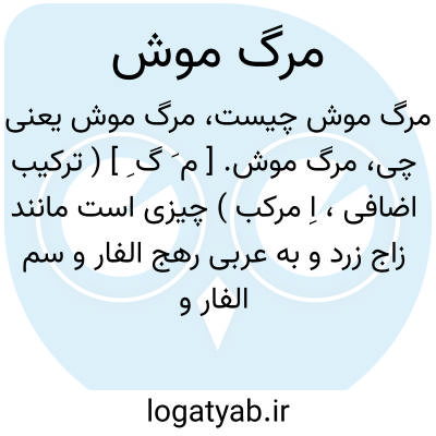 مرگ موش. [ م َ گ ِ ] ( ترکیب اضافی، اِ مرکب ) چیزی است مانند زاج زرد و به عربی رهج الفار و سم الفار و تراب الهالک خوانند. ( برهان ). ترجمه سم الفار که دوائی است کشنده موش. ( آنندراج ). چون نمک بی مزه سنگی است که زهر است ویژه موش را. داروی موش. شک. رهج الفار. هالوک. هاکول. حرفقان. زرنی. زرنیخ. زرنیق. زرنیخ سفید. ارسانیسوس. اکسید سفیدرنگ ارسنیک را گویند که در اصطلاح شیمی به نام انیدرید ارسنیو خوانده میشود. فرمول شیمیائیش As2O3 میباشد. سم بسیار شدیدی است که جهت از بین بردن موش مواد غذائی را با آن مخلوط کنند و در سوراخ موش گذارند، موشها پس از خوردن سم به فاصله کمی تلف میشوند. || کنایه از ماده مخدر از قبیل بنگ و غیره است و در بیت ذیل ممکن است کنایه از شراب باشد: