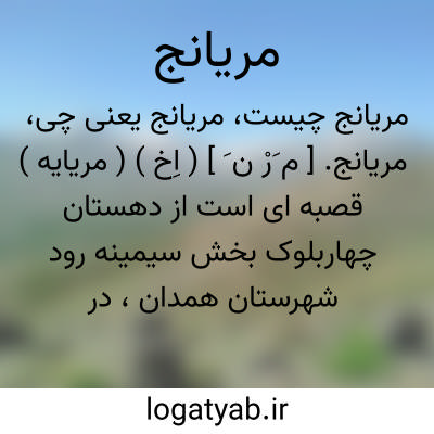 مریانج. [ م َرْ ن َ ] ( اِخ ) ( مریایه ) قصبه ای است از دهستان چهاربلوک بخش سیمینه رود شهرستان همدان، در 6هزارگزی غرب همدان کنار راه همدان به کرمانشاه، در منطقه کوهستانی سردسیر واقع و دارای 4555 تن سکنه است. آبش از قنات و رودخانه ٔوفرجین، محصولش غلات، حبوبات، لبنیات، صیفی، میوه جات، شغل مردمش زراعت و گله داری، و صنایع دستی زنان قالیچه و جاجیم بافی است. متجاوز از 200 باب دکان در این قصبه وجود دارد. ( از فرهنگ جغرافیایی ایران ج 5 ).