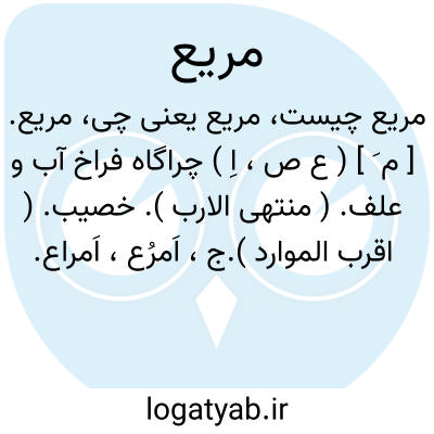 مریع. [ م َ ] ( ع ص، اِ ) چراگاه فراخ آب و علف. ( منتهی الارب ). خصیب. ( اقرب الموارد ).ج، اَمرُع، اَمراع. ( منتهی الارب ) ( اقرب الموارد ).