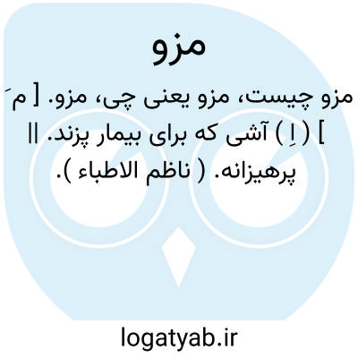 مزو. [ م َ ] ( اِ ) آشی که برای بیمار پزند. || پرهیزانه. ( ناظم الاطباء ).