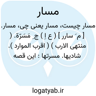 مسار. [ م َ سارر ] ( ع اِ ) ج ِ مَسَرّة. ( منتهی الارب ) ( اقرب الموارد ). شادیها. مسرتها: این قصه به سمع اعلای شاه أسمعه اﷲ المسار از بهر آن گذرانیدم تا... ( سندبادنامه ص 202 ). از حضرت چنگیزخان یرلیغی رسید مضمون آن موجبات مسار وابتهاج بود. ( جهانگشای جوینی ). رجوع به مسرة شود.