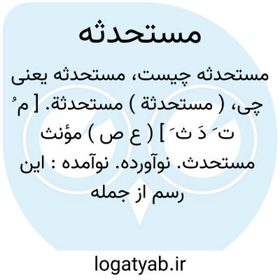 ( مستحدثة ) مستحدثة. [ م ُ ت َ دَ ث َ ] ( ع ص ) مؤنث مستحدث. نوآورده. نوآمده: این رسم از جمله رسمهای مستحدثه است. ( تاریخ قم ص 166 ). رجوع به مستحدث و استحداث شود.