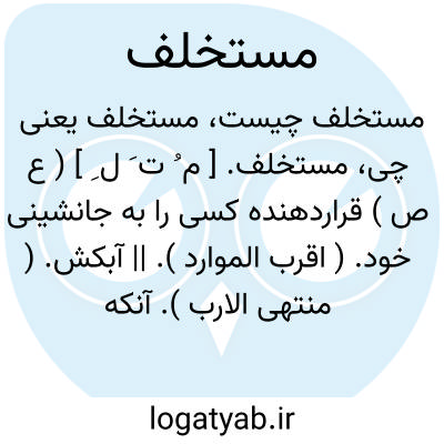 مستخلف. [ م ُ ت َ ل ِ ] ( ع ص ) قراردهنده کسی را به جانشینی خود. ( اقرب الموارد ). || آبکش. ( منتهی الارب ). آنکه برای اهل خود آب می آورد. ( اقرب الموارد ). رجوع به استخلاف شود.