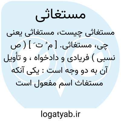 مستغاثی. [ م ُ ت َ ] ( ص نسبی ) فریادی و دادخواه، و تأویل آن به دو وجه است: یکی آنکه مستغاث اسم مفعول است به معنی کسی که از او دادرسی خواهند و آن حاکم باشد، و یاء آن نسبت باشد و مجموعاً به معنی دادخواه، وجه دیگر آنکه مستغاث مصدر میمی است و یاء آن نسبت یا یاء فاعلیت باشد و مجموعاً به معنی استغاثه کننده، چنانکه کسبی به معنی کسب کننده. ( از غیاث ) ( آنندراج ).