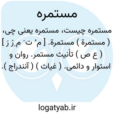 ( مستمرة ) مستمرة. [ م ُ ت َ م ِرْ رَ ] ( ع ص ) تأنیث مستمر. روان و استوار و دائمی. ( غیاث ) ( آنندراج ). پیوسته. همیشه. مستمره. و رجوع به مستمر و استمرار شود: اگر احدی از قانون حق و حساب و امور مستمره و معمول مملکت و ضابطه حقانیت تخلف و تجاوز نماید... ( تذکرةالملوک چ دبیرسیاقی ص 6 ).