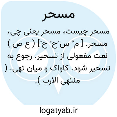 مسحر. [ م ُ س َح ْ ح َ] ( ع ص ) نعت مفعولی از تسحیر. رجوع به تسحیر شود. کاواک و میان تهی. ( منتهی الارب ). مجوف، و اصل آن کسی است که «سحر» و ریه او زایل شده باشد. ( از اقرب الموارد ). || محتاج طعام و شراب علت نهاده. ( منتهی الارب ). آنکه به او طعام داده باشند و او را سرگرم کرده باشند. ( از اقرب الموارد ). || فریفته و مشغول. ( منتهی الارب ). || آنکه او راطعام سحور داده باشند. ( از اقرب الموارد ). || مسحور و سِحرزده. ( از منتهی الارب ) ( ناظم الاطباء ). آنکه او را سحر کرده باشند. ( از اقرب الموارد ).