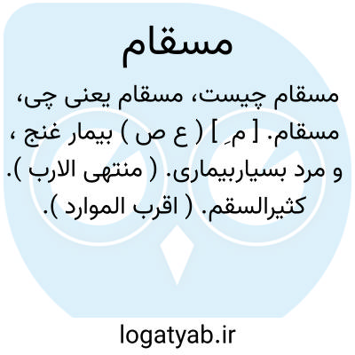 مسقام. [ م ِ ] ( ع ص ) بیمار غنج، و مرد بسیاربیماری. ( منتهی الارب ). کثیرالسقم. ( اقرب الموارد ). بسیار بیماری. ( دهار ). بیمارناک. بیمارگن. بیمارگین. بیمارژون. ممراض. || سالی بیماری ناک. ( دهار ).