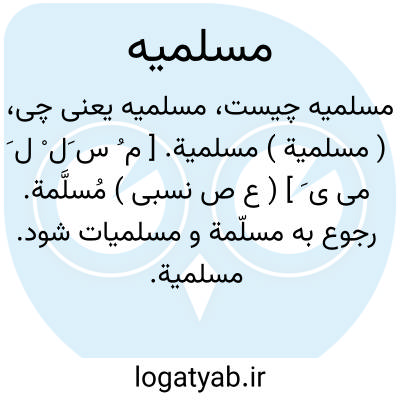 ( مسلمیة ) مسلمیة. [ م ُ س َل ْ ل َ می ی َ ] ( ع ص نسبی ) مُسلَّمة. رجوع به مسلّمة و مسلمیات شود.