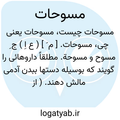 مسوحات. [ م َ ] ( ع اِ ) ج ِ مسوح و مسوحة. مطلقاً داروهائی را گویند که بوسیله دستها ببدن آدمی مالش دهند. ( از بحر الجواهر ): دراطلیه و مسوحات ملذذ جهت تقویت باه. ( از کتاب هدایةالملوک ابن الفقیه اصفهانی از یادداشت مرحوم دهخدا ).ادهان مرکبه. مسوحا. و رجوع به مسوح و مسوحة شود.