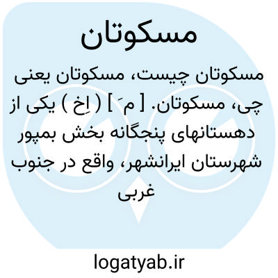 مسکوتان. [ م َ ] ( اِخ ) دهی است مرکز دهستان مسکوتان بخش بمپور شهرستان ایرانشهر، واقع در 70هزارگزی جنوب غربی بمپور و 37هزارگزی غرب راه شوسه بمپور به چاه بهار، با 2500 تن سکنه. آب آن از سه رشته قنات تأمین می شود. ( از فرهنگ جغرافیایی ایران ج 8 ).