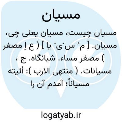 مسیان. [ م ُ س َی ْ یا ] ( ع اِ مصغر ) مصغر مساء. شبانگاه. ج، مسیانات. ( منتهی الارب ): أتیته مسیاناً؛ آمدم آن را در شب. ( ناظم الاطباء ).