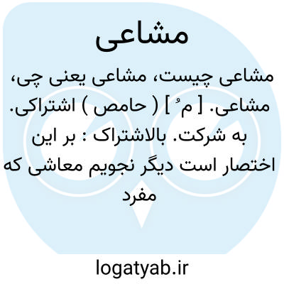 مشاعی. [ م ُ ] ( حامص ) اشتراکی. به شرکت. بالاشتراک: