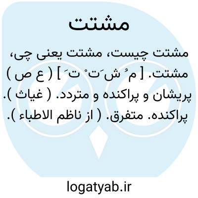 مشتت. [ م ُ ش َت ْ ت َ ] ( ع ص ) پریشان و پراکنده و متردد. ( غیاث ). پراکنده. متفرق. ( از ناظم الاطباء ).