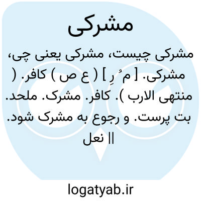 مشرکی. [ م ُ رِ ] ( ع ص ) کافر. ( منتهی الارب ). کافر. مشرک. ملحد. بت پرست. و رجوع به مشرک شود. || نعل شراک قرارداده شده. ( از اقرب الموارد ).
