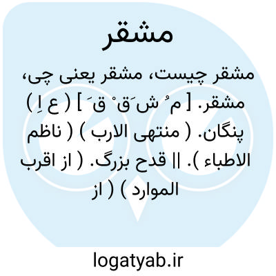 مشقر. [ م ُ ش َق ْ ق َ ] ( ع اِ ) پنگان. ( منتهی الارب ) ( ناظم الاطباء ). || قدح بزرگ. ( از اقرب الموارد ) ( از محیطالمحیط ). || خیک چرمین. ( منتهی الارب ) ( ناظم الاطباء ) ( از اقرب الموارد ) ( از محیطالمحیط ).