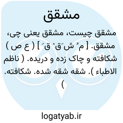 مشقق. [ م ُ ش َق ْ ق َ ] ( ع ص ) شکافته و چاک زده و دریده. ( ناظم الاطباء ). شقه شقه شده. شکافته. ( یادداشت دهخدا ):