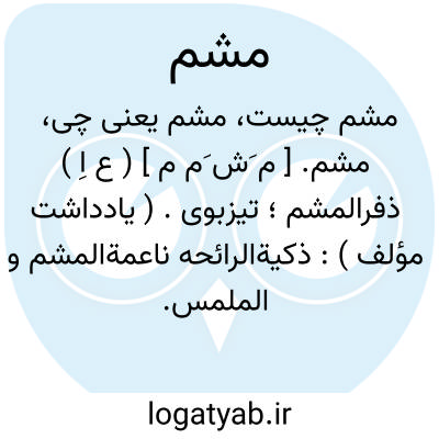مشم. [ م َش َم م ] ( ع اِ ) ذفرالمشم؛ تیزبوی. ( یادداشت مؤلف ): ذکیةالرائحه ناعمةالمشم و الملمس. ( ابن البیطار ) ( یادداشت مؤلف ).