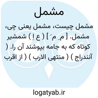 مشمل. [ م ِ م َ ] ( ع اِ ) شمشیر کوتاه که به جامه بپوشند آن را. ( آنندراج ) ( منتهی الارب ) ( از اقرب الموارد ). شمشیر بران. ج، مشامل. ( مهذب الأسماء ). دشنه. قمه. ( یادداشت مؤلف ). || نوعی از چادر که بر خود پیچند. ( منتهی الارب ) ( آنندراج ) ( ناظم الاطباء ). و رجوع به مشمال شود.