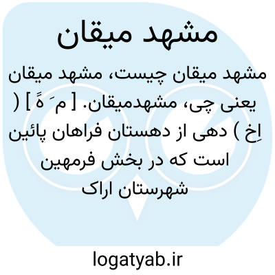 مشهدمیقان. [ م َ هََ ] ( اِخ ) دهی از دهستان فراهان پائین است که در بخش فرمهین شهرستان اراک قرار گرفته و 538 تن سکنه دارد. ( از فرهنگ جغرافیائی ایران ج 2 ).