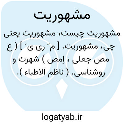 مشهوریت. [ م َ ری ی َ ] ( ع مص جعلی، اِمص ) شهرت و روشناسی. ( ناظم الاطباء ).