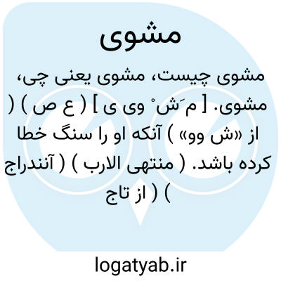مشوی. [ م َش ْ وی ی ] ( ع ص ) ( از «ش وو» ) آنکه او را سنگ خطا کرده باشد. ( منتهی الارب ) ( آنندراج ) ( از تاج العروس ) ( ازناظم الاطباء ) ( از محیطالمحیط ) ( از اقرب الموارد ).