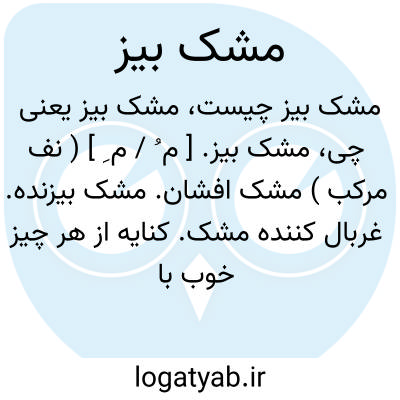 مشک بیز. [ م ُ / م ِ ] ( نف مرکب ) مشک افشان. مشک بیزنده. غربال کننده مشک. کنایه از هر چیز خوب با رائحه مطبوع: