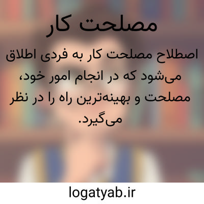 اصطلاح مصلحت کار به فردی اطلاق می‌شود که در انجام امور خود، مصلحت و بهینه‌ترین راه را در نظر می‌گیرد. چنین شخصی با سنجش شرایط و پیامدهای کارها، تصمیم‌هایی اتخاذ می‌کند که کمترین زیان و بیشترین منفعت را به همراه دارد. در واقع، مصلحت کار کسی است که رفتار و تصمیماتش عقلانی و با دوراندیشی انجام می‌شود.