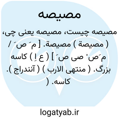 ( مصیصة ) مصیصة. [ م َ ص َ / م َص ْ صی ص َ ] ( ع اِ ) کاسه بزرگ. ( منتهی الارب ) ( آنندراج ). کاسه. ( ناظم الاطباء ). کاسه بزرگ ( و عامه صاد اول را مشدد تلفظ کنند ). ( از اقرب الموارد ).