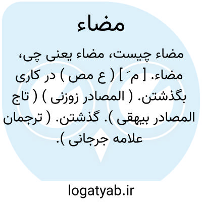 مضاء. [ م َض ْ ضا ] ( ع ص ) کسی که عزمی استوار دارد. ( از ذیل اقرب الموارد ) ( لسان العرب ). یقال: و انت مضاء علی ما عزمت علیه. ( ذیل اقرب الموارد ).