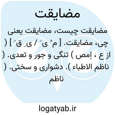 ۱- ( مصدر ) تنگ گرفتن بر یکدیگر سخت گرفتن. ۲ - از دادن چیزی بکسی یا کردن کاری برای کسی خودداری کردن. ۳- ( اسم ) سختگیری. ۴ - خود داری از دادن مال و چیزی بکسی یا کردن کاری برای او: بادوستان مضایقه در عمر ومال نیست صدجان فدای یار نصیحت نیوش کن.