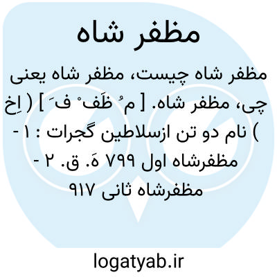 مظفر شاه. [ م ُ ظَف ْ ف َ ] ( اِخ ) نام دو تن ازسلاطین گجرات: 1 - مظفرشاه اول 799 هَ. ق. 2 - مظفرشاه ثانی 917 هَ. ق. ( طبقات سلاطین لین پول ص 282 ).