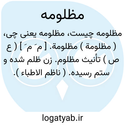 ( اسم ) مونث مظلوم جمع: مظلومات. مظلومی. مظلوم بودن ستمدیدگی: و بر مظلومی هابیل و درد دل او میگریند.