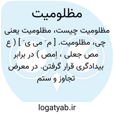 مظلومیت. [ م َ می ی َ ] ( ع مص جعلی، اِمص ) در برابر بیدادگری قرار گرفتن. در معرض تجاوز و ستم واقع شدن. بی دفاع ماندن در مقابل تجاوز و بیدادگری.