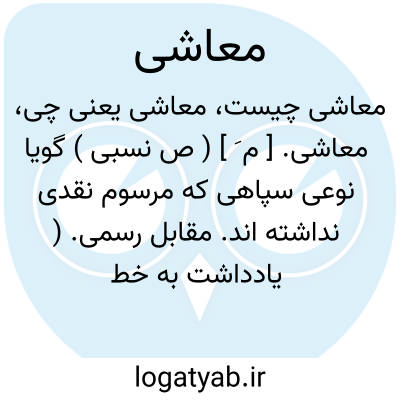 معاشی. [ م َ ] ( ص نسبی ) گویا نوعی سپاهی که مرسوم نقدی نداشته اند. مقابل رسمی. ( یادداشت به خط مرحوم دهخدا ):